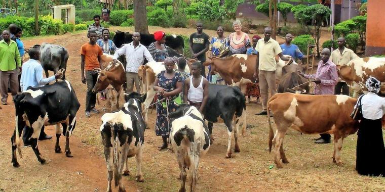 Scovia Nandala hat bei dem Erdrutsch ihren Sohn verloren. Die Schwiegertochter ist psychisch krank und nicht in der Lage, sich um ihre drei Kinder zu kümmern (Zwillinge und ein älterer Bruder). Scovia ist selber verwitwet, die Milchkuh wird ihr helfen, sich um ihre drei Enkel zu kümmern.